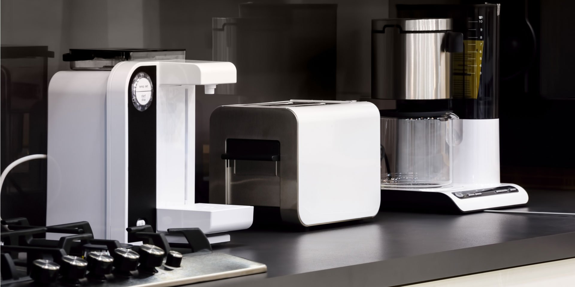 Ấm nước, máy xay, máy pha cà phê và tất cả những thiết bị gia dụng nhỏ khác thường được lựa chọn theo tiêu chí duy nhất là tính năng và hiệu quả sử dụng. Chúng thường không được bày biện trong nhà mà giấu kín trong tủ do vẻ ngoài thiếu hấp dẫn với lớp mạ chrome bóng loáng, phô trương.Tuy nhiên, xu hướng tối giản đang tạo nên sự thay đổi trong lĩnh vực này. Ngày nay các sản phẩm điện gia dụng đã được sự cân bằng giữ tính năng và thẩm mỹ. Máy nướng bánh mì, máy trộn, máy sấy tóc v.v. đang ra đời với phong cách thiết kế riêng biệt, tạo nên sức hút riêng và thỏa mãn nhu cầu của người tiêu dùng đối với sự tinh tế đến từng chi tiết trong thiết kế sản phẩm.